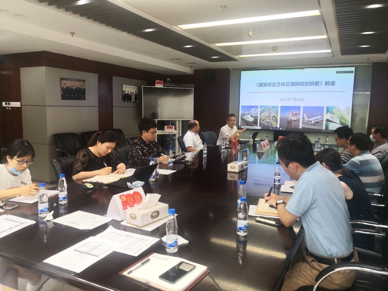 池德振副總經(jīng)理兼總規(guī)劃師講述了《國家綜合立體交通網(wǎng)規(guī)劃綱要》的編制過程、綱要特點(diǎn)及文本解讀。提綱挈領(lǐng)的強(qiáng)調(diào)目前交通運(yùn)輸發(fā)展現(xiàn)狀,根據(jù)國內(nèi)、國際形勢需求,如何推進(jìn)綜合交通統(tǒng)籌融合發(fā)展及高質(zhì)量發(fā)展而提出的保障措施,為公司在以后的運(yùn)輸規(guī)劃項(xiàng)目市場發(fā)展中起到支撐指導(dǎo)作用。