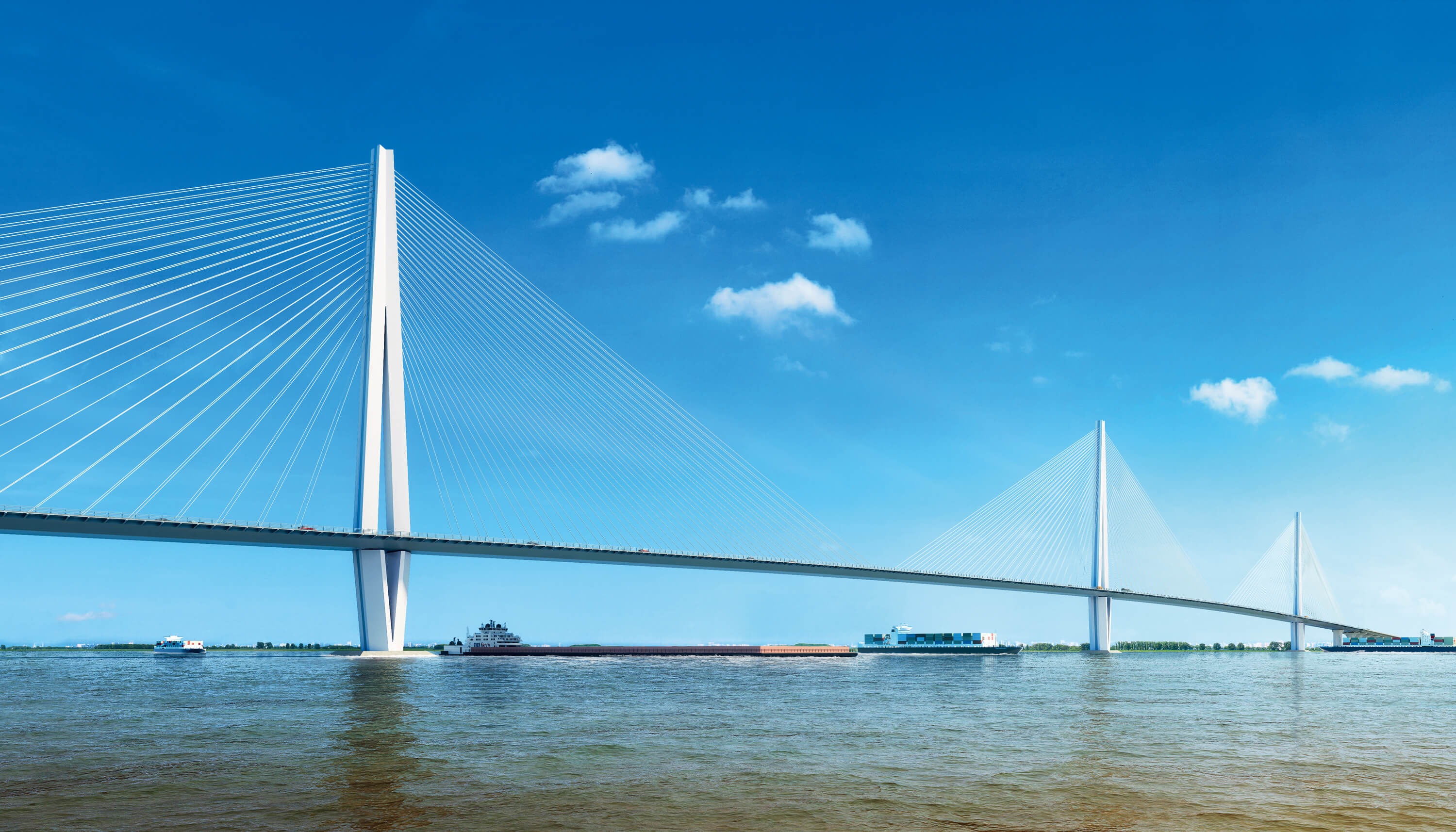南京長江五橋是 205 國道和 312 國道的過江通道,同時也是南京“高快速路系統(tǒng)”中繞城公路的重要組成部分。項(xiàng)目按雙向六車道一級公路標(biāo)準(zhǔn)建設(shè),全長約10.33 公里,其中跨長江大橋長約 4.4 公里,夾江隧道長約 1.8 公里,采用三塔兩主跨中央雙索面設(shè)計(jì),主跨跨徑達(dá)到600 米,是世界首座輕型鋼混組合結(jié)構(gòu)斜拉橋。大橋橋跨長、交通量大、互通立交設(shè)計(jì)復(fù)雜,交通安全設(shè)計(jì)極為重要。